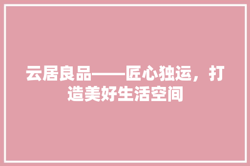 人们对生活的追求越来越多元化。家,作为人们心灵的港湾,其重要性不言而喻。而一个温馨、舒适的居住环境,则需要专业的设计和施工。云居良品装修公司,以其精湛的工艺、优质的服务和独特的设计理念,在装修行业树立了良好的口碑。今天,就让...